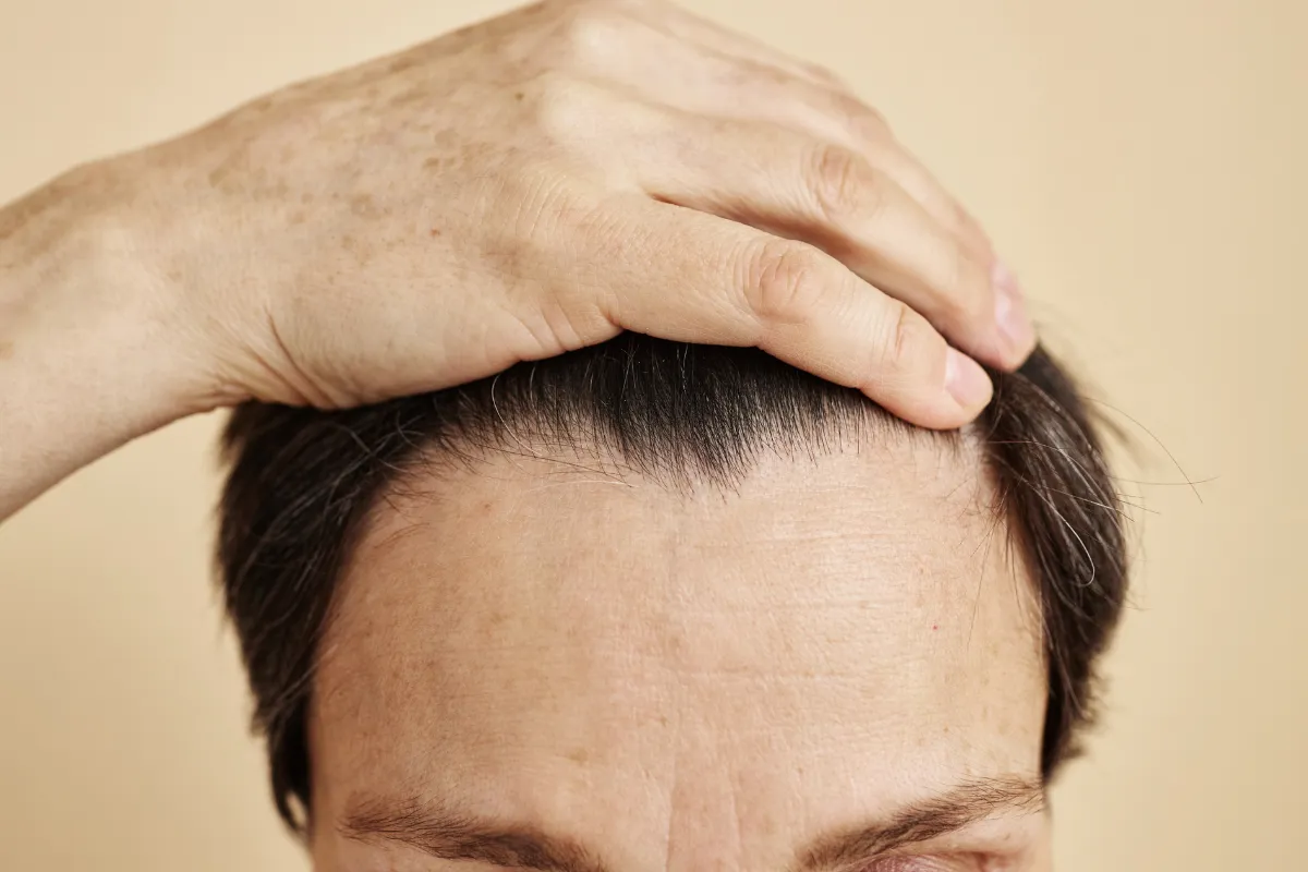 Ein zurückgehender Haaransatz, der häufig bei männlichem Haarausfall auftritt, führt zu einer „M“-Form auf der Stirn, beginnend an den Schläfen. Genetik und hormonelle Veränderungen, insbesondere DHT, tragen zu dieser Art von Haaransatz bei. Frühzeitige Behandlungen wie Minoxidil oder Finasterid können das Fortschreiten verlangsamen.